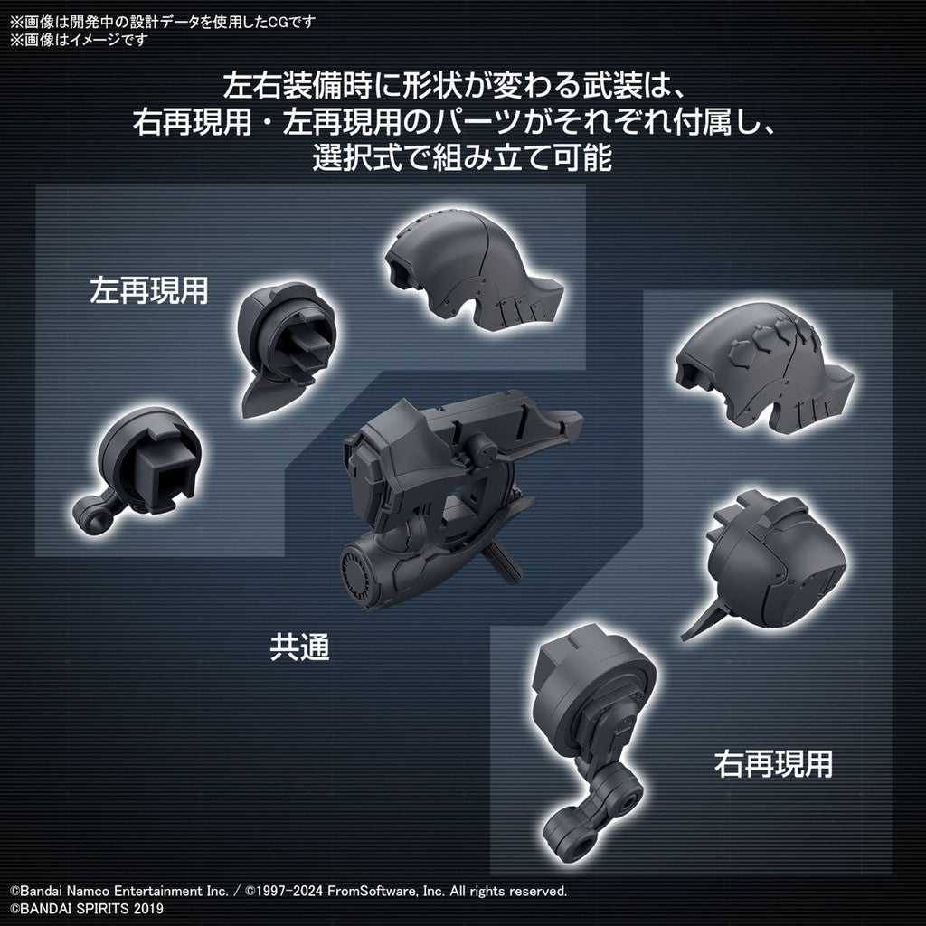 Bandai adds items from the game "Armored Core VI Fires of Rubicon" to their "30MM (30 Minutes Missions)" model-kit series! This is a group of weapons, including the popular laser rifle. Weapons that change shape when equipped on th left and right come with parts for both sides, and can be assembled selectively. In addition, the VP-67LD comes with clear molded effect parts to reproduce its unfolded state. Order yours today!
