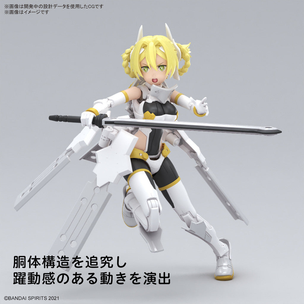 Bandai's "30MS (30 Minutes Sisters)" lineup gets a new sister -- say hello to Yuphia! This set includes parts to build her body, three interchangeable faces with tampo printing (a normal expression, a smile, and a screaming face), and armor parts. Teeth parts are included, and can be installed if you like! Her waist armor is movable on multiple axes, and has a new structure that allows her to be displayed in a natural kneeling pose. Her shield and hammer can be attached to her back; her hairstyle has a delicate design that highlights her individuality. As with all 30MS figures, you can use any face parts, hairstyles, and body parts from other figures in the line to customize her as you like, thanks to the common 3mm joints used throughout the series. Order her for your own collection today!
